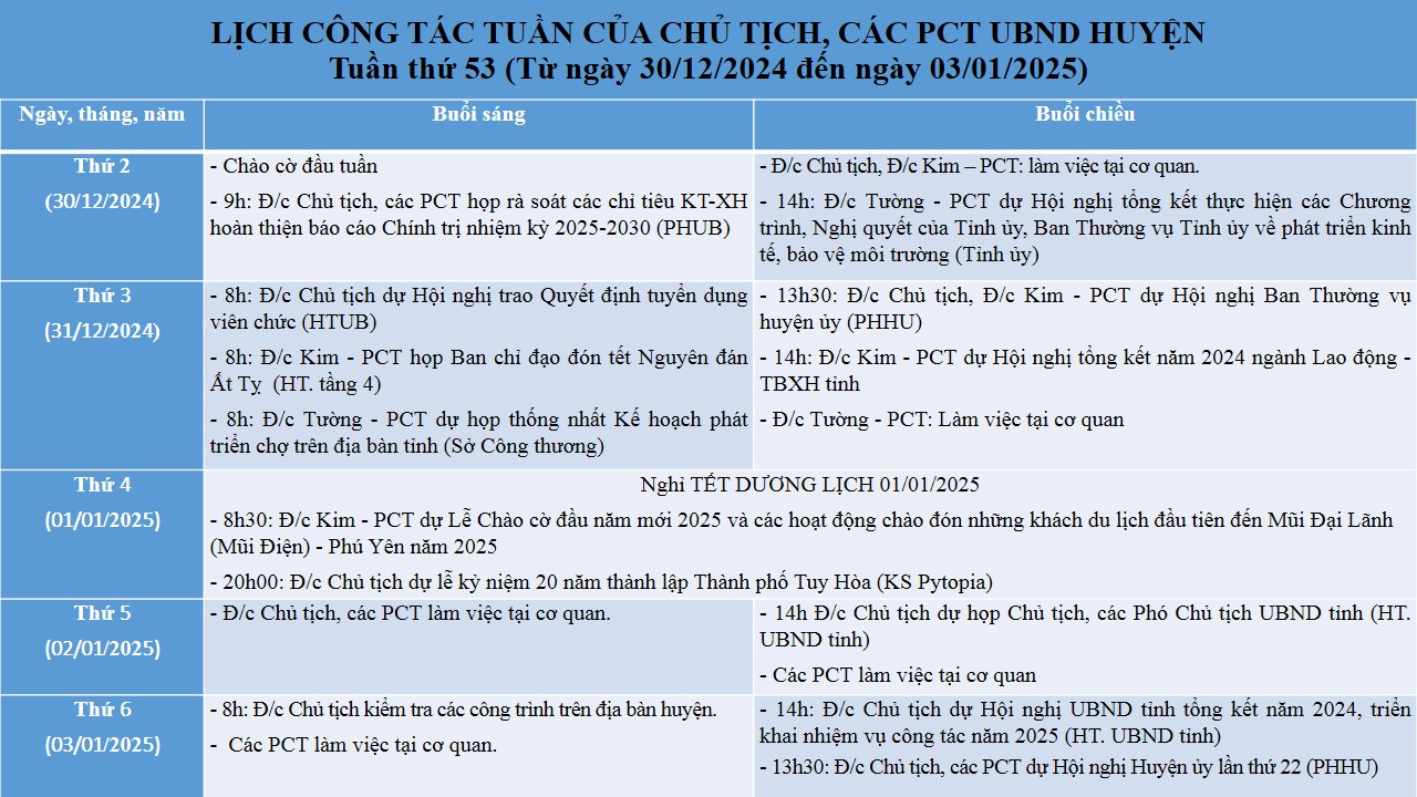 Thứ hai, 30/12/2024 | 15:39 A- A A+ | Lịch tuần 53 Lịch tuần 53 Chia sẻ Lưu Tập tin đính kèm Trình duyệt không hỗ trợ iframe. Tổng số điểm của bài viết là: 161 trong 161 đánh giá Click để đánh giá bài viết