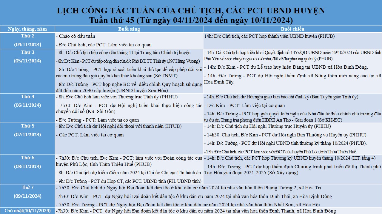 Thứ hai, 04/11/2024 | 12:52 A- A A+ | Lịch tuần 45 Lịch tuần 45 Chia sẻ Lưu Tập tin đính kèm Trình duyệt không hỗ trợ iframe. Tổng số điểm của bài viết là: 1 trong 1 đánh giá Click để đánh giá bài viết