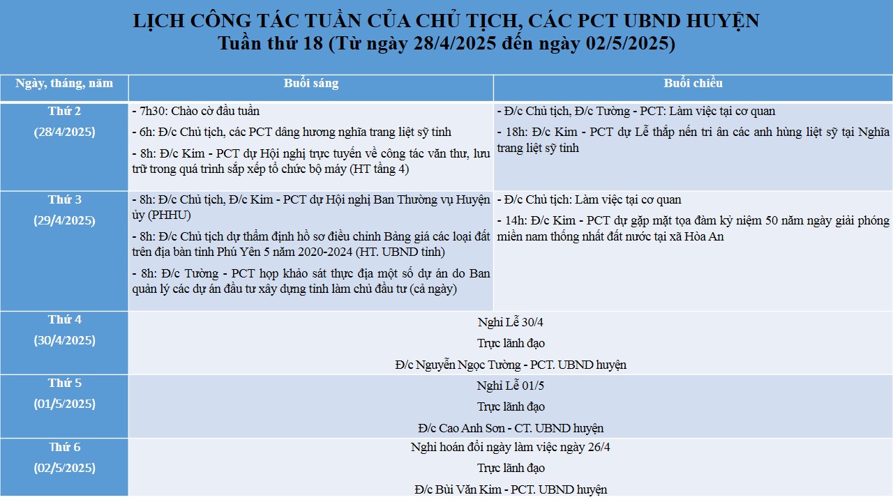Thứ hai, 28/04/2025 | 15:09 A- A A+ | Lịch tuần 18 Lịch tuần 18 Chia sẻ Lưu Tập tin đính kèm Trình duyệt không hỗ trợ iframe. Tổng số điểm của bài viết là: 1 trong 1 đánh giá Click để đánh giá bài viết