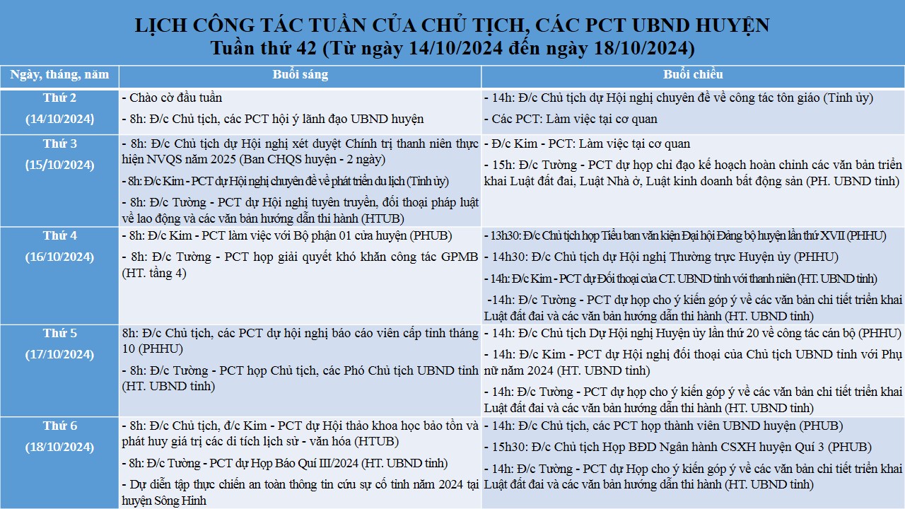 Thứ hai, 14/10/2024 | 13:42 A- A A+ | Lịch tuần 42 Lịch tuần 42 Chia sẻ Lưu Tập tin đính kèm Trình duyệt không hỗ trợ iframe. Tổng số điểm của bài viết là: 3 trong 3 đánh giá Click để đánh giá bài viết