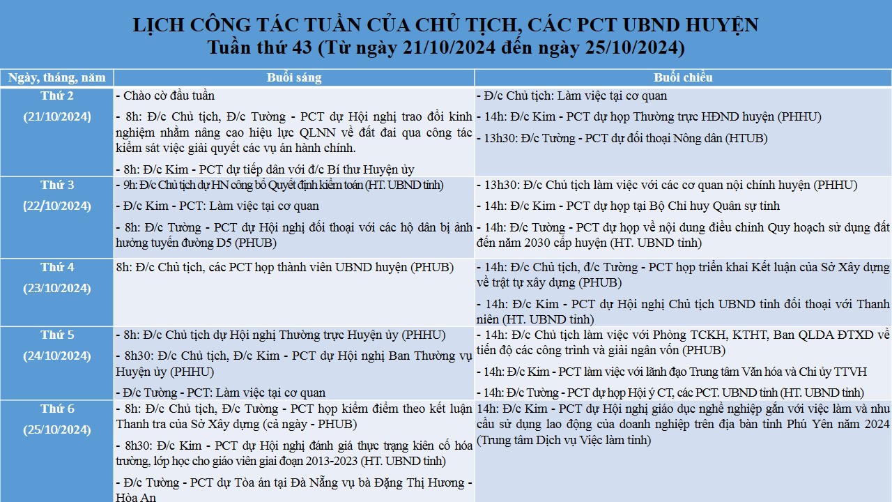Thứ ba, 22/10/2024 | 07:49 A- A A+ | Lịch tuần 43 Lịch tuần 43 Chia sẻ Lưu Tập tin đính kèm Trình duyệt không hỗ trợ iframe. Tổng số điểm của bài viết là: 3 trong 3 đánh giá Click để đánh giá bài viết