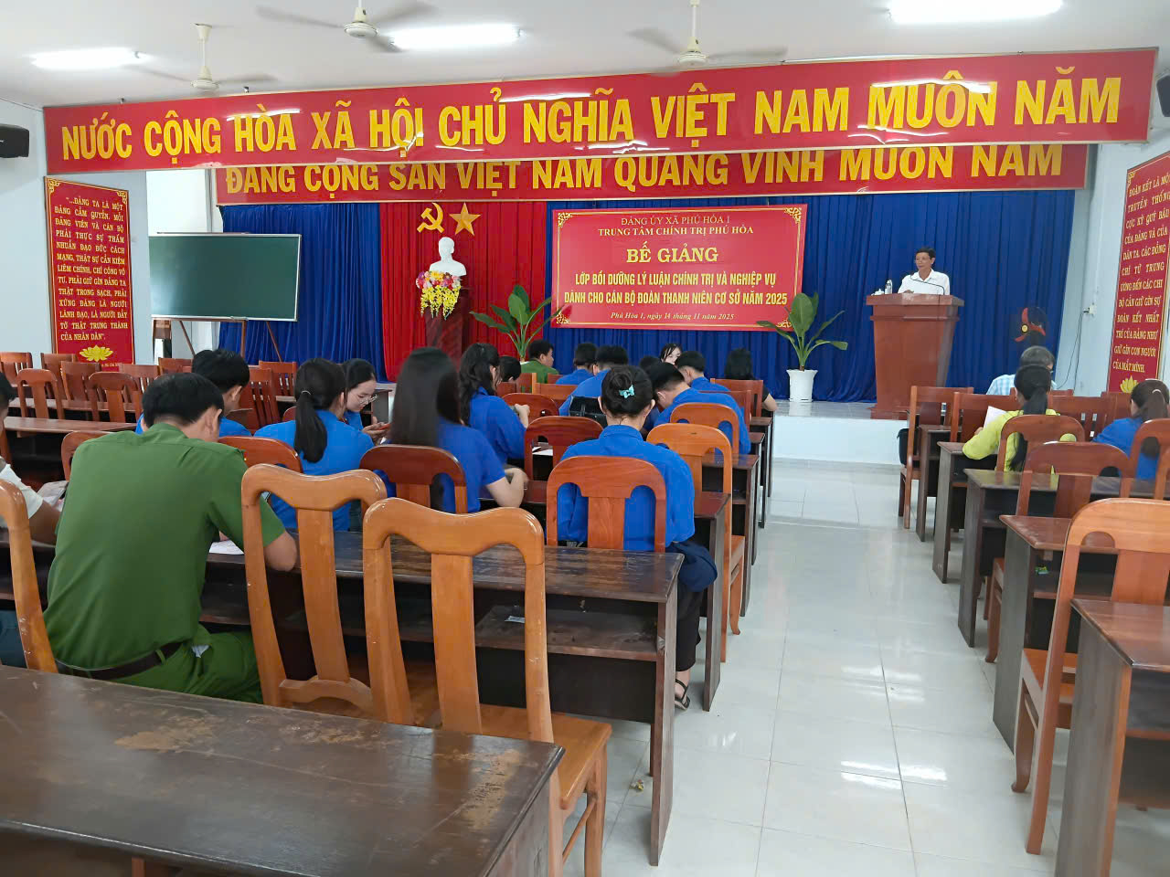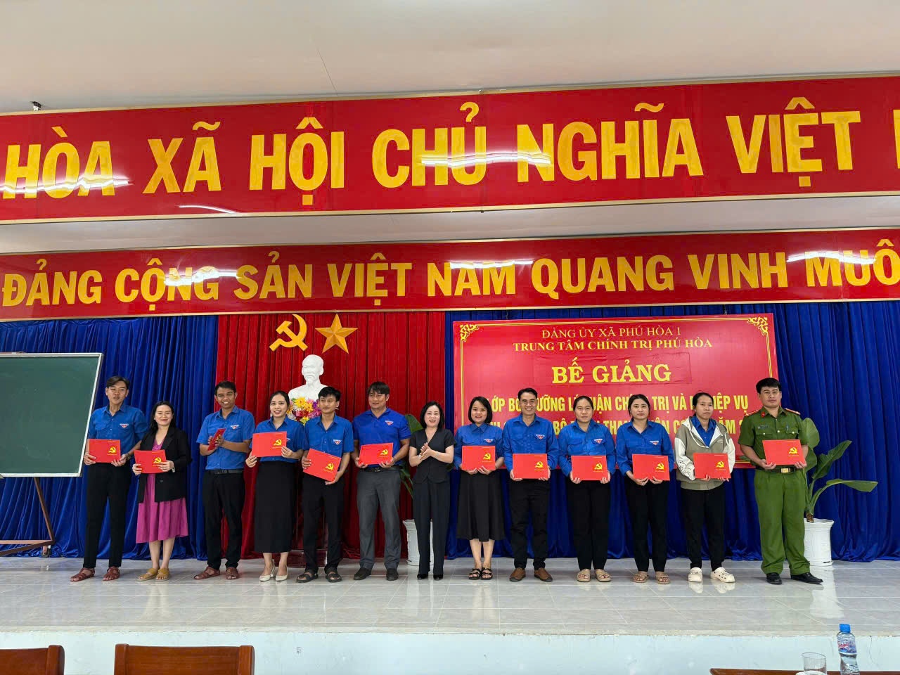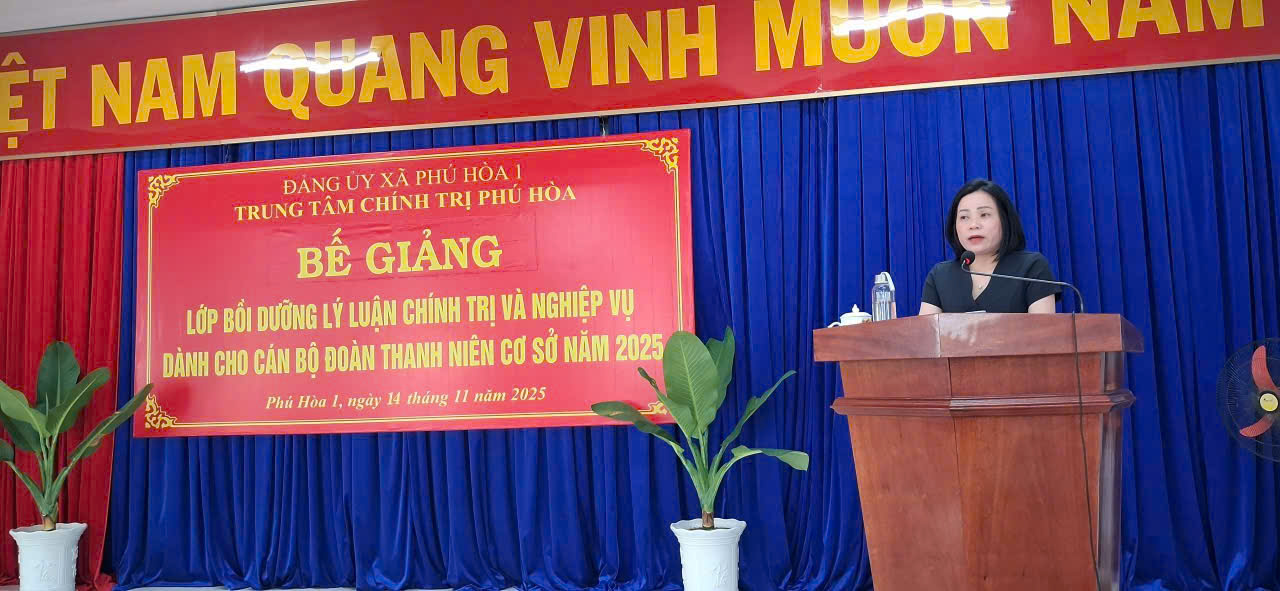 Ngày 14/11, Trung tâm Chính trị Phú Hòa tổ chức bế giảng lớp bồi dưỡng lý luận chính trị và nghiệp vụ dành cho 50 học viên là cán bộ Đoàn cơ sở trên địa bàn xã Phú Hòa 1 và Phú Hòa 2.