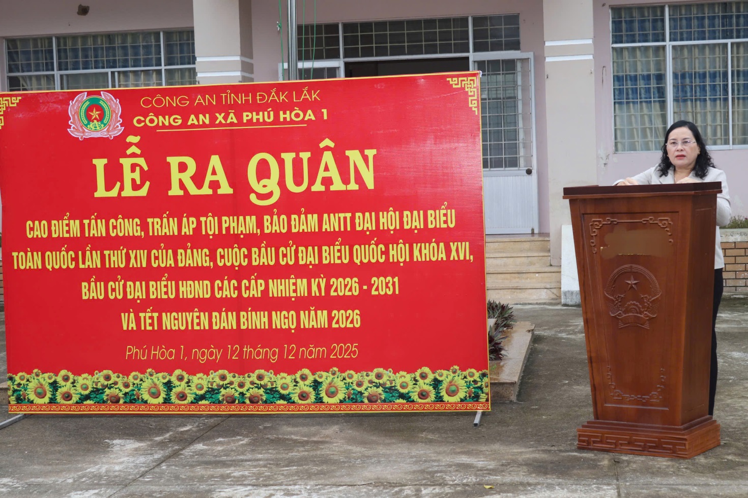 Sáng 12/12, Công an xã Phú Hòa 1 tổ chức lễ ra quân cao điểm tấn công, trấn áp tội phạm, bảo đảm an ninh, trật tự Đại hội đại biểu toàn quốc lần thứ XIV của Đảng, bầu cử đại biểu Quốc hội khóa XVI và đại biểu HĐND các cấp nhiệm kỳ 2026-2031, Tết Nguyên đán Bính Ngọ 2026 và các sự kiện lớn của đất nước, các lễ hội đầu năm.