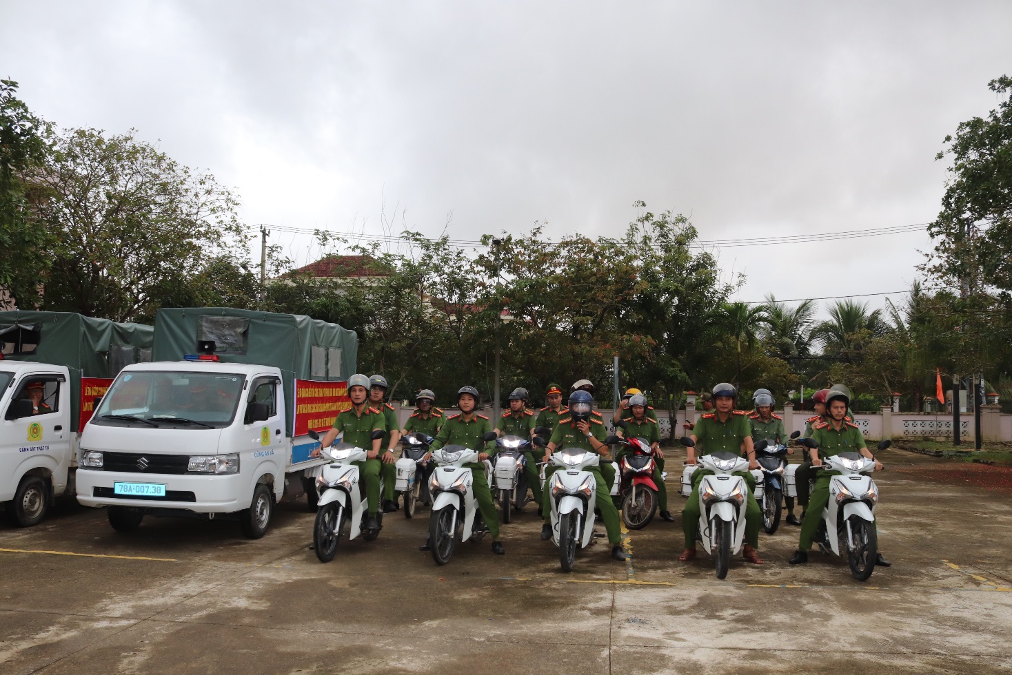 Dự lễ ra quân có đồng chí Huỳnh Thị Son, Bí thư Đảng ủy, Chủ tịch HĐND xã; Nguyễn Trường Thi, Phó Bí thư Đảng ủy, Chủ tịch UBND xã; Hà Công Vinh, Ủy viên Ban Thường vụ Đảng ủy, Chủ tịch Ủy ban MTTQ Việt Nam xã; Thượng tá Trần Quang Cảm, Ủy viên Ban Thường vụ Đảng ủy, Trưởng Công an xã cùng lãnh đạo, cán bộ, chiến sĩ Công an xã và lực lượng bảo vệ an ninh trật tự ở cơ sở.