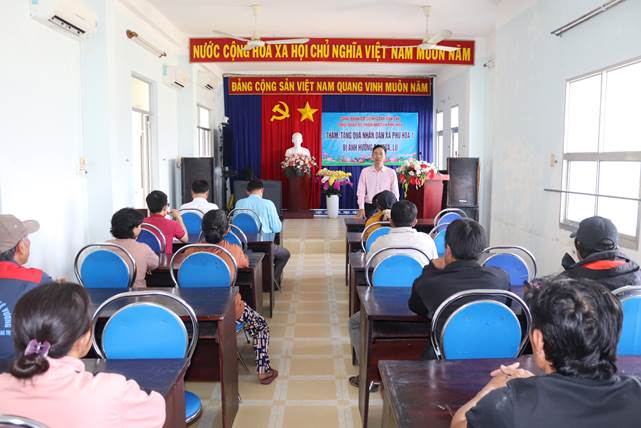 Tại buổi trao quà, lãnh đạo chi nhánh Ngân hàng CSXH Đắk Lắk và lãnh đạo Phòng giao dịch Ngân hàng CSXH Phú Hòa đã thăm hỏi, động viên tinh thần và mong bà con sớm vượt qua khó khăn, ổn định cuộc sống; đồng thời, trao tặng 30 suất quà, mỗi suất 1 triệu đồng được đóng góp từ tập thể cán bộ, nhân viên, người lao động, đoàn viên công đoàn của đơn vị cho 30 hộ gia đình có hoàn cảnh khó khăn bị ảnh hưởng bởi thiên tai, lũ lụt trên địa bàn xã Phú Hòa 1 và Phú Hòa 2, mỗi xã 15 suất.