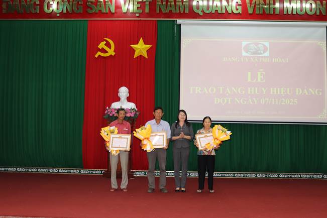 Đảng ủy xã Phú Hòa 1 tổ chức lễ trao tặng và truy tặng Huy hiệu Đảng đợt 7/11/2025