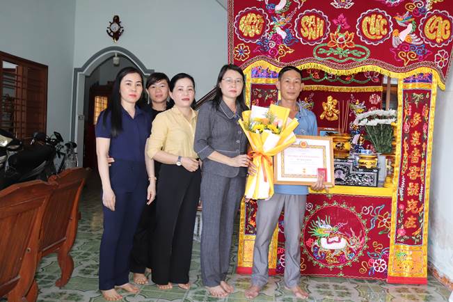 Trao Huy hiệu 45 năm tuổi Đảng cho thân nhân đảng viên Hồ Thạch Trung (thôn Định Thọ 1).