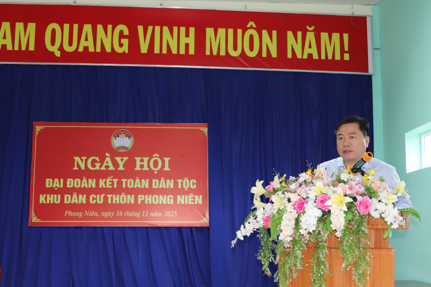 Phát biểu tại ngày hội, đồng chí Trần Hữu Thế, Ủy viên Ban Thường vụ Tỉnh ủy, Phó Chủ tịch Thường trực Ủy ban MTTQ Việt Nam tỉnh biểu dương những kết quả nổi bật mà cán bộ, đảng viên và nhân dân thôn Phong Niên đã đạt được trong thời gian qua. Đồng thời đề nghị, thời gian tới, cán bộ và nhân dân thôn Phong Niên tiếp tục phát huy tinh thần đoàn kết, thi đua lao động sản xuất, góp phần xây dựng xã Phú Hòa 1 ngày càng phát triển.