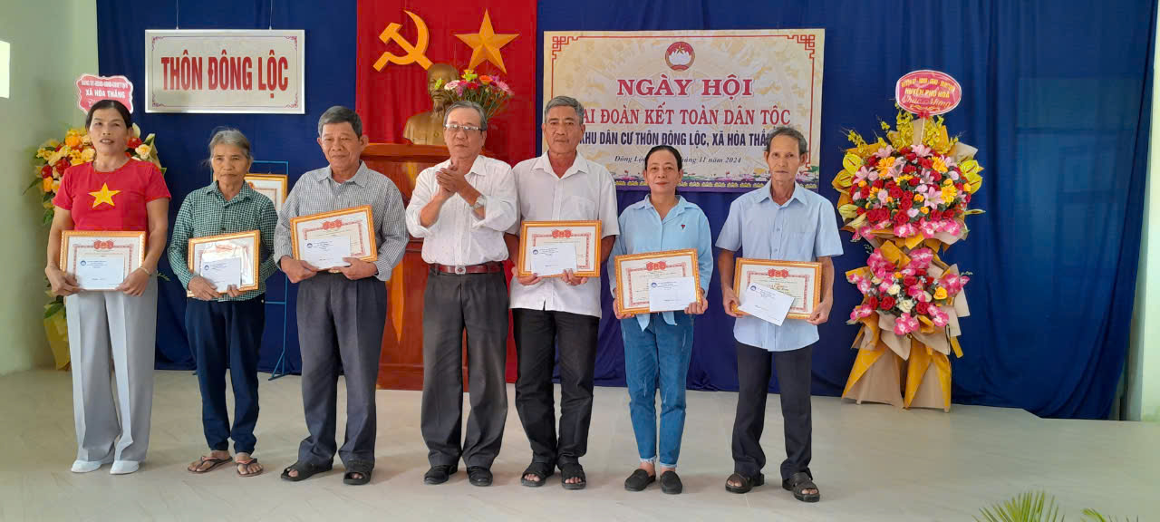 Dịp này, Ủy ban MTTQ Việt Nam tỉnh tặng Bằng khen tập thể khu dân cư Đông Lộc, UBND xã Hòa Thắng khen thưởng 6 cá nhân có thành tích xuất sắc trong thực hiện cuộc vận động toàn dân đoàn kết xây dựng nông thôn mới, đô thị văn minh năm 2024. Các đồng chí lãnh đạo tỉnh, huyện cũng tặng nhiều phần quà để động viên, khích lệ các phong trào ở khu dân cư.