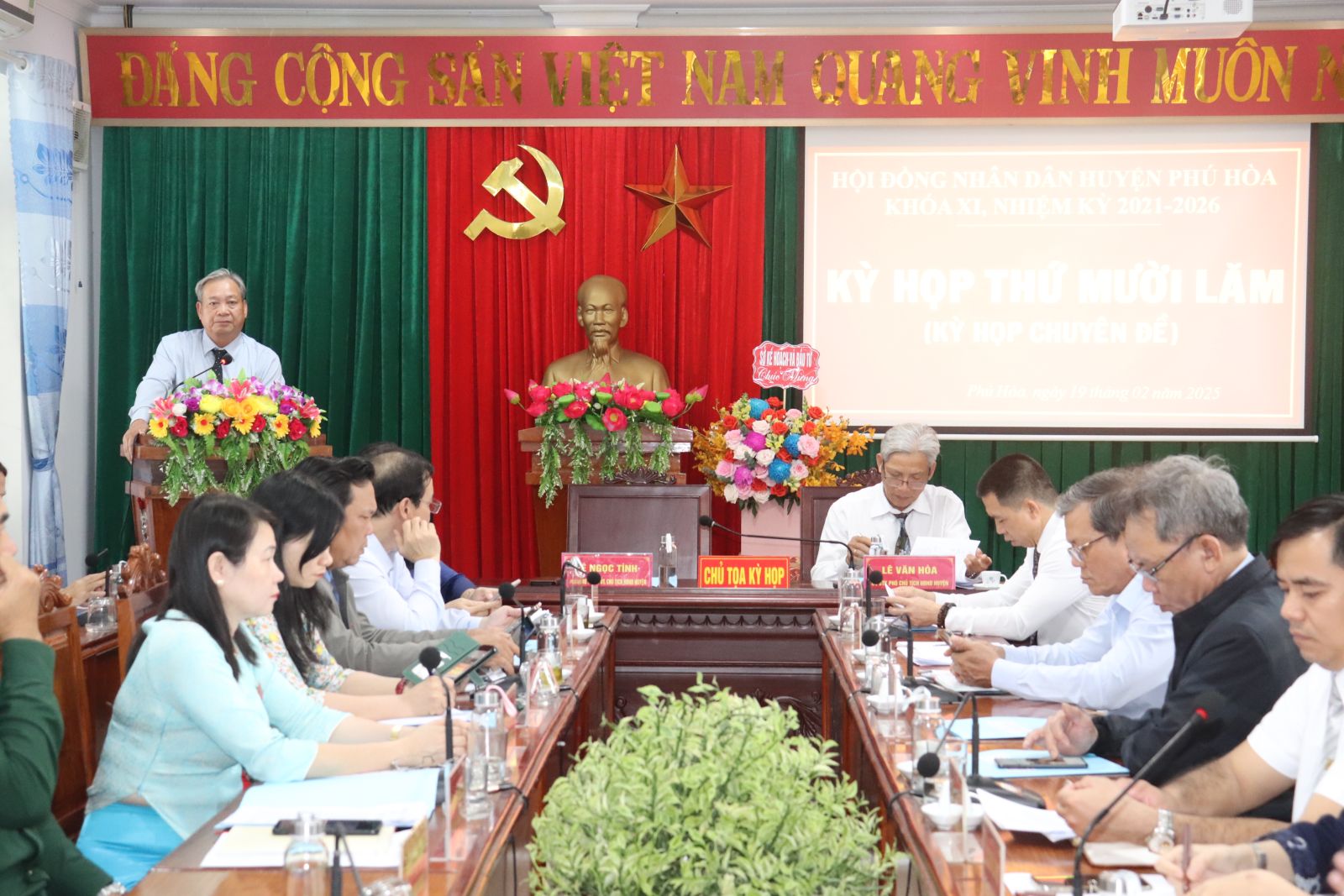 Chiều 19/2, HĐND huyện Phú Hòa khóa XI, nhiệm kỳ 2021-2026 tổ chức kỳ họp lần thứ 15 (kỳ họp chuyên đề). Đồng chí Lê Ngọc Tính, TUV, Bí thư Huyện ủy, Chủ tịch HĐND huyện; Lê Văn Hòa, Ủy viên Ban Thường vụ Huyện ủy, Phó Chủ tịch HĐND huyện chủ tọa kỳ họp.