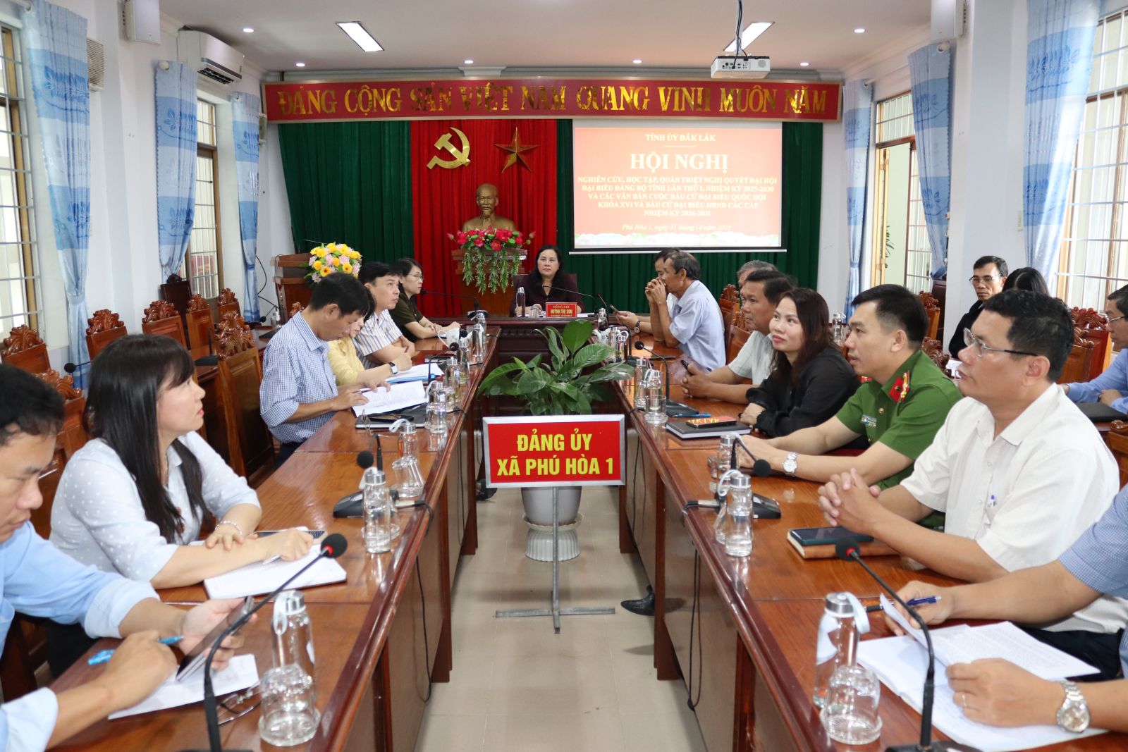 Dự hội nghị tại điểm cầu xã Phú Hòa 1 có đồng chí Huỳnh Thị Son, Bí thư Đảng ủy, Chủ tịch HĐND xã; Trần Thị Hạnh, Phó Bí thư Thường trực Đảng ủy xã; Nguyễn Trường Thi, Phó Bí thư Đảng ủy, Chủ tịch UBND xã; các đồng chí nguyên lãnh đạo huyện Phú Hòa; các đồng chí trong Ban Thường vụ, Ban chấp hành Đảng bộ xã; lãnh đạo các chi, đảng bộ trực thuộc; lãnh đạo các cơ quan, đơn vị, trường học, Công an, Ban CHQS xã, các thôn, buôn trên địa bàn xã.