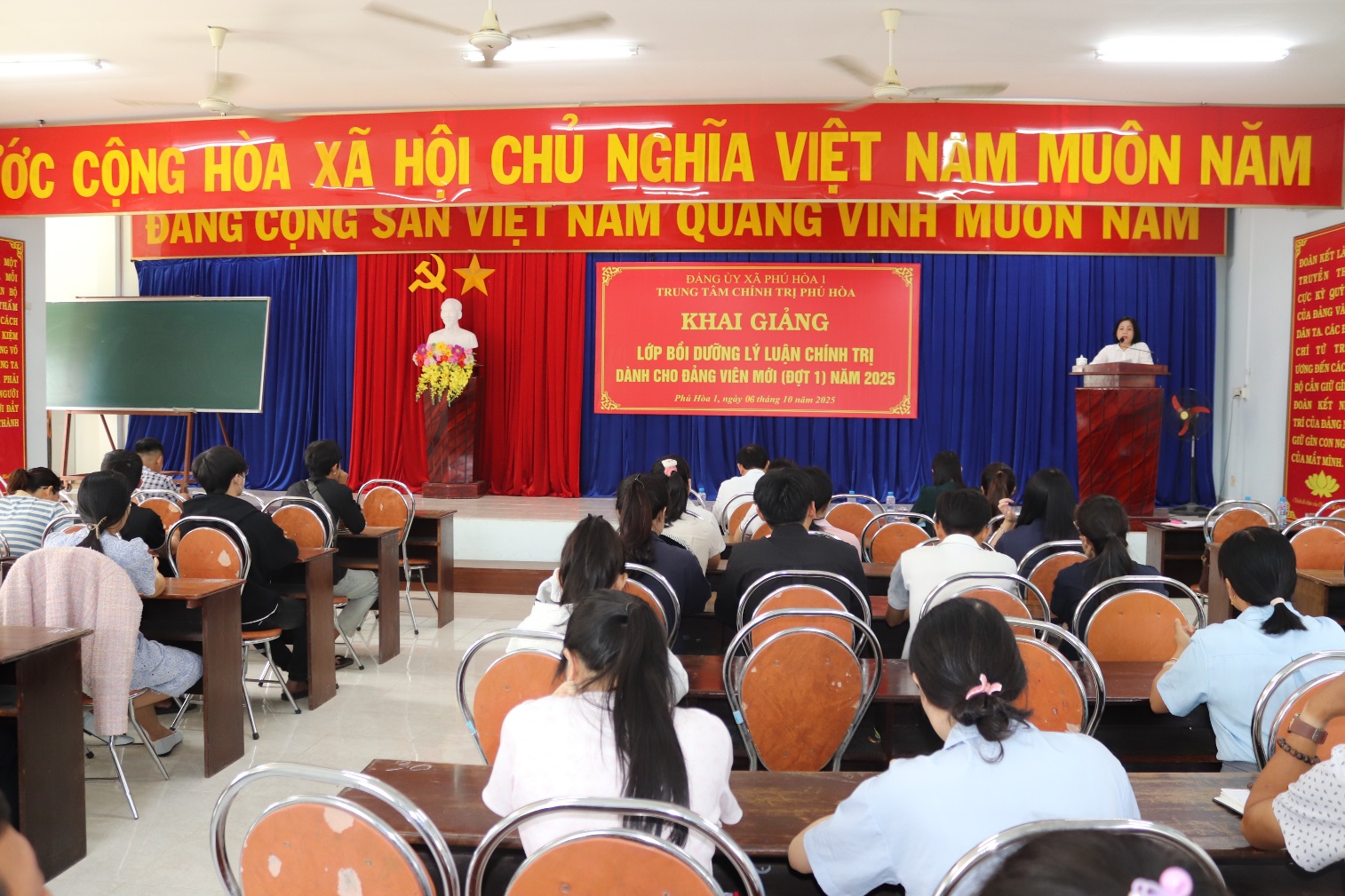 Sáng 6/10, Trung tâm Chính trị Phú Hòa khai giảng lớp bồi dưỡng lý luận chính trị (đợt 1) năm 2025 cho 65 đảng viên mới thuộc các tổ chức Đảng trên địa bàn 2 xã Phú Hòa 1 và Phú Hòa 2.