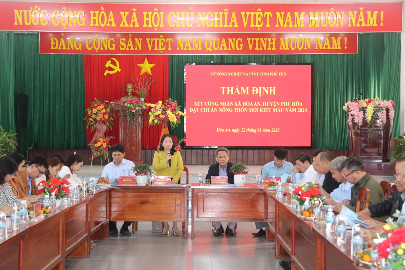 Phát biểu kết luận tại buổi thẩm định, bà Đặng Thị Thủy, Phó Giám đốc Sở Nông nghiệp và phát triển nông thôn, Chánh Văn phòng Điều phối nông thôn mới tỉnh, trưởng đoàn thẩm định ghi nhận những kết quả đạt được trong xây dựng nông thôn mới kiểu mẫu của xã Hòa An. Đồng thời đề nghị huyện Phú Hòa và xã Hòa An tiếp thu các ý kiến góp ý của các sở, ban, ngành, khẩn trương hoàn chỉnh báo cáo, hồ sơ gửi về Văn phòng Điều phối nông thôn mới tỉnh trước ngày 10/2/2025 để tổng hợp, báo cáo UBND tỉnh xem xét, công nhận. Bên cạnh đó, tiếp tục tuyên truyền, vận động nhân dân nâng chất các tiêu chí, chỉ tiêu đã đạt, chung tay xây dựng nông thôn mới.