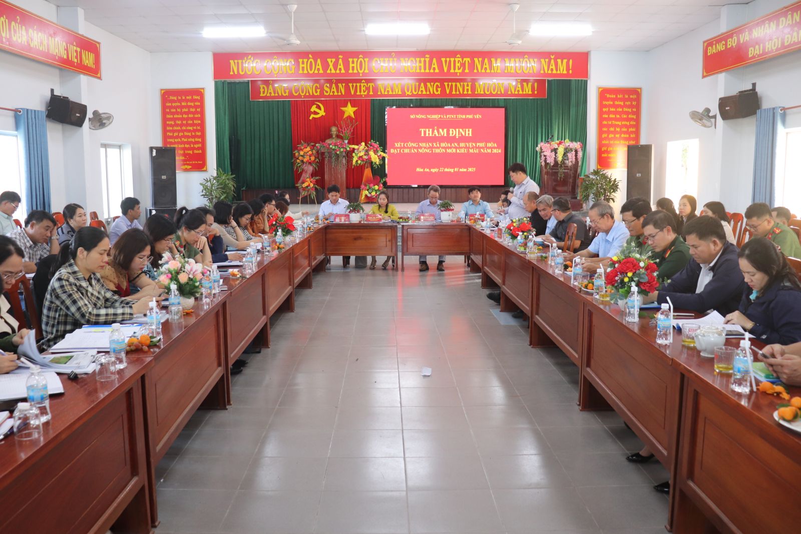 Dự thẩm định có bà Đặng Thị Thủy, Phó Giám đốc Sở Nông nghiệp và phát triển nông thôn, Chánh văn phòng điều phối nông thôn mới tỉnh; đại diện lãnh đạo các sở, ban, ngành của tỉnh, Văn phòng Điều phối nông thôn mới tỉnh. Ở huyện có ông Đinh Công Thạch, Ủy viên Ban Thường vụ, Trưởng Ban Dân vận Huyện ủy, Chủ tịch Ủy ban MTTQ Việt Nam huyện; Nguyễn Ngọc Tường, HUV, Phó Chủ tịch UBND huyện; các thành viên Văn phòng điều phối nông thôn mới huyện; lãnh đạo các phòng ban, đơn vị của huyện và xã Hòa An.