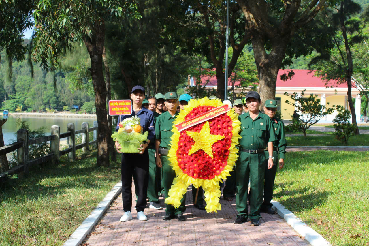 Tại đây, đoàn đại biểu Hội CCB huyện Phú Hòa thành kính đặt vòng hoa và thắp nén tâm hương tưởng nhớ công lao to lớn của các anh hùng liệt sĩ trong sự nghiệp giải phóng đất nước và nghe thuyết minh ý nghĩa lịch sử về những Chuyến tàu không số.
