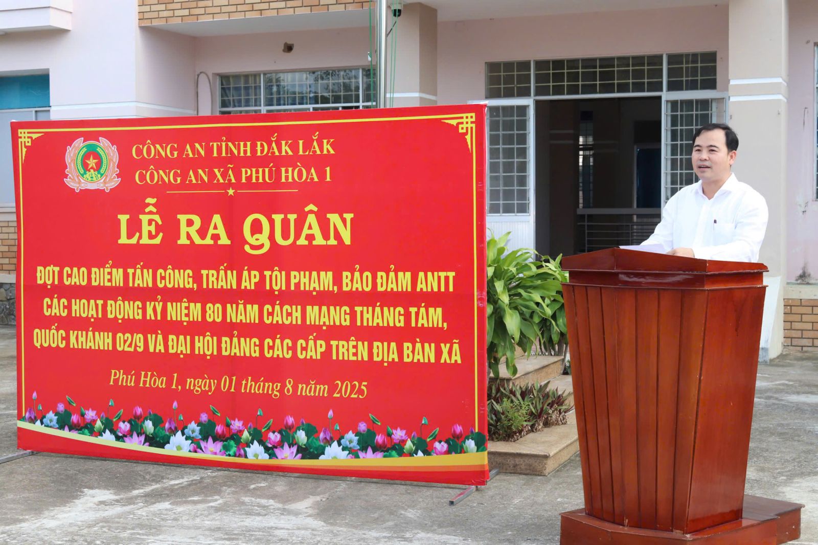 Sáng 1/8, Công an xã Phú Hòa 1 tổ chức lễ ra quân đợt cao điểm tấn công, trấn áp tội phạm, bảo đảm an ninh, trật tự các hoạt động kỷ niệm 80 năm Cách mạng tháng Tám, Quốc khánh 2/9 và Đại hội Đảng các cấp trên địa bàn xã.
