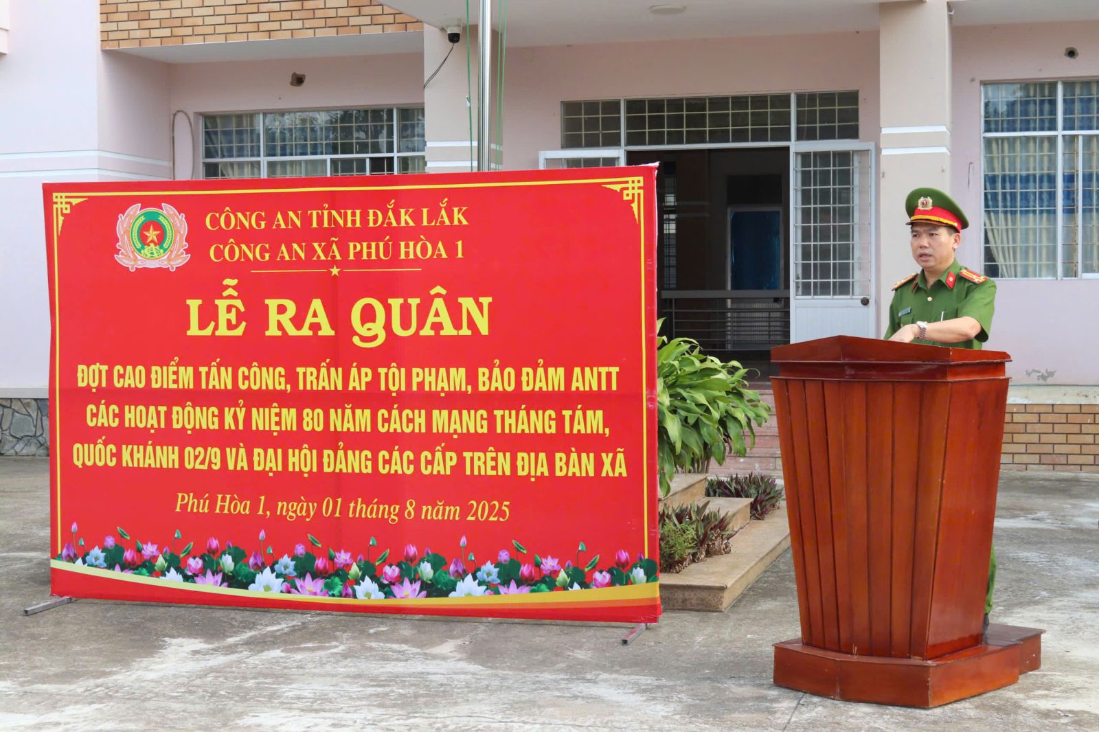 Ngay sau buổi lễ, Công an xã đã tổ chức diễu hành biểu dương lực lượng trên các tuyến đường thuộc địa bàn xã Phú Hòa 1 nhằm tuyên truyền, nâng cao nhận thức cho nhân dân về công tác phòng, chống tội phạm, tệ nạn xã hội, tạo khí thế quyết tâm tấn công trấn áp tội phạm của cán bộ, chiến sĩ trong toàn lực lượng Công an xã.