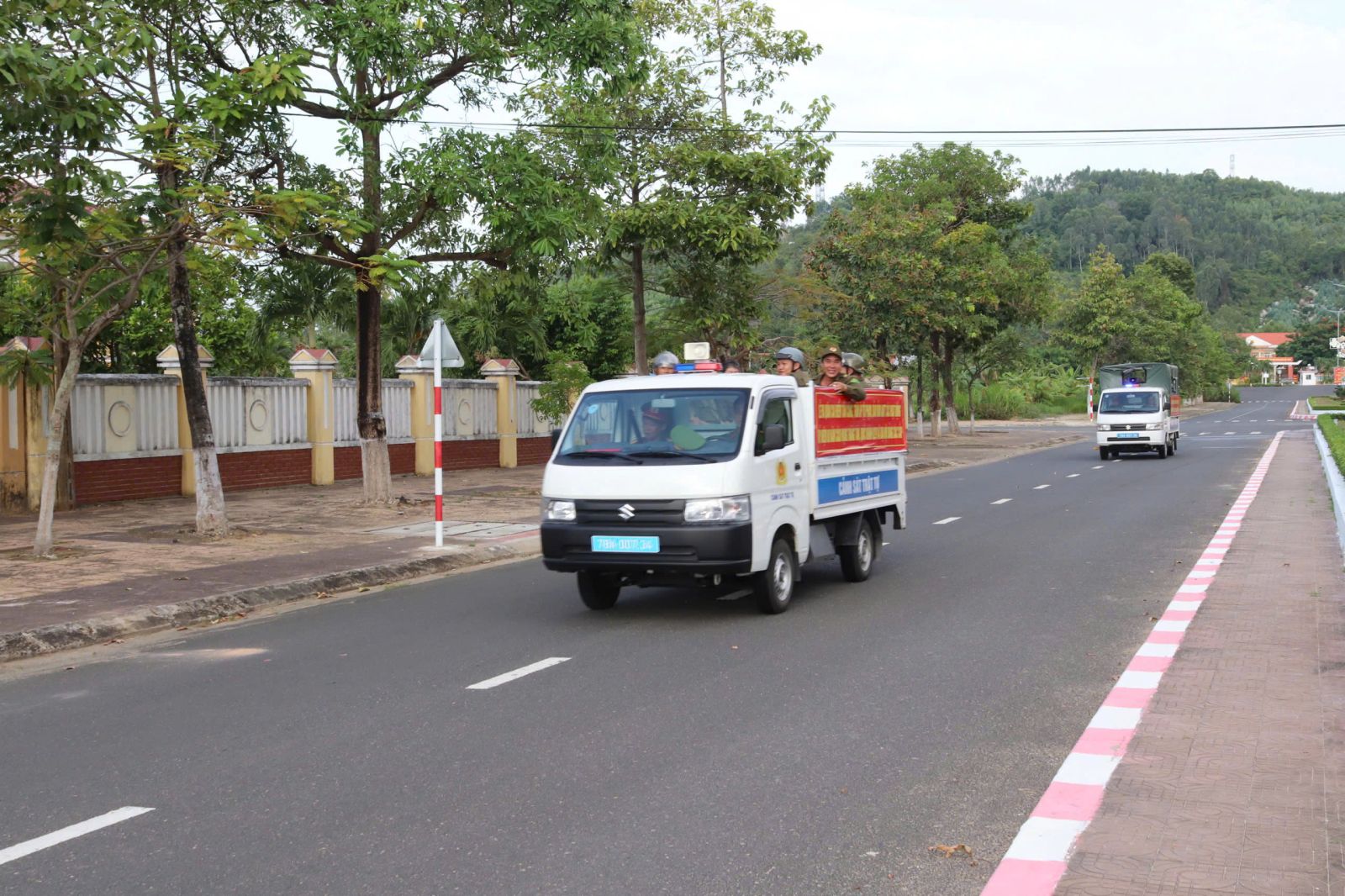 Đồng chí Thượng tá Trần Quang Cảm, Ủy viên Ban Thường vụ Đảng ủy, Trưởng Công an xã phát lệnh ra quân.