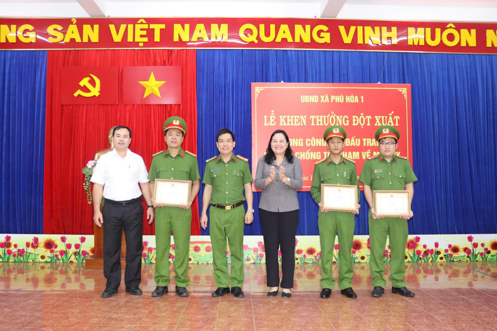 Khen thưởng đột xuất cho tập thể và cá nhân thuộc Công an xã vì có thành tích xuất sắc trong công tác đấu tranh phòng, chống tội phạm về ma túy.