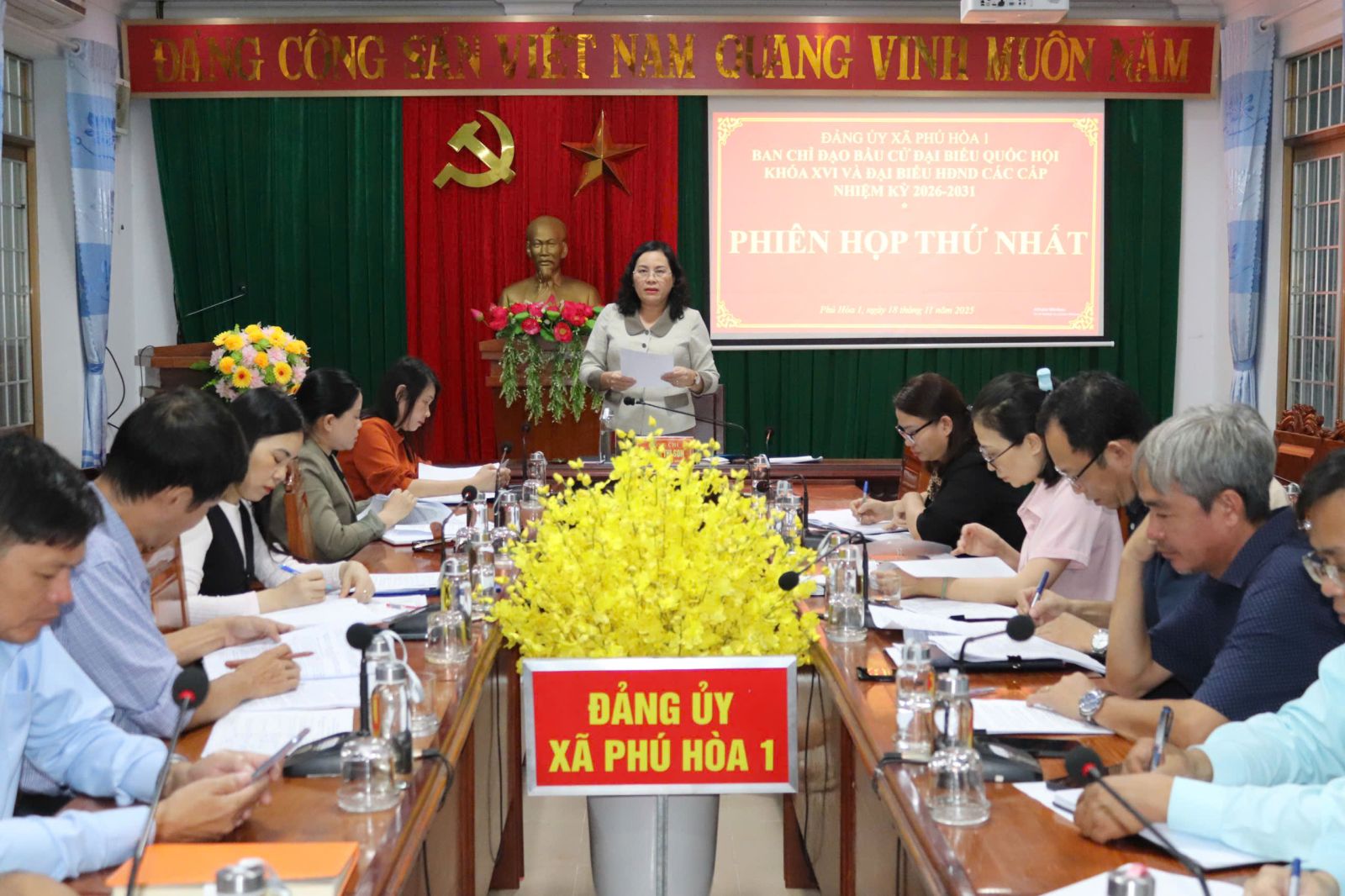 Chiều 18/11, Ban chỉ đạo bầu cử đại biểu Quốc hội khóa XVI và đại biểu HĐND các cấp nhiệm kỳ 2026-2031 xã Phú Hòa 1 tổ chức phiên họp thứ nhất để triển khai các nội dung liên quan công tác bầu cử trên địa bàn xã. Đồng chí Huỳnh Thị Son, Bí thư Đảng ủy, Chủ tịch HĐND xã, Trưởng Ban Chỉ đạo công tác bầu cử xã chủ trì hội nghị.