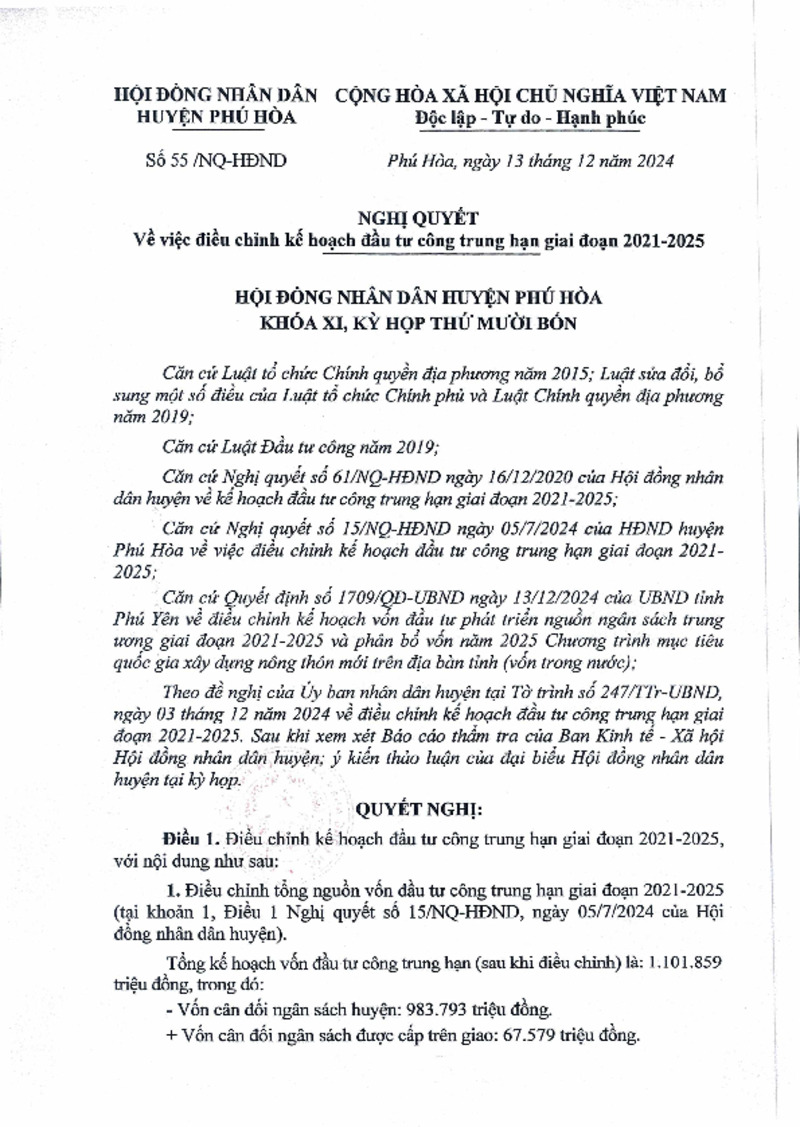 | Tiêu đề văn bản | Nghị quyết về việc điều chỉnh kế hoạch đầu tư công trung hạn giai đoạn 2021-2025 | ||