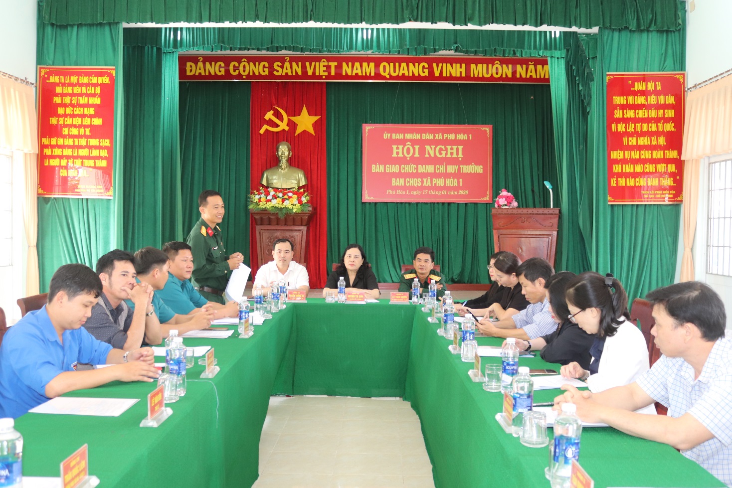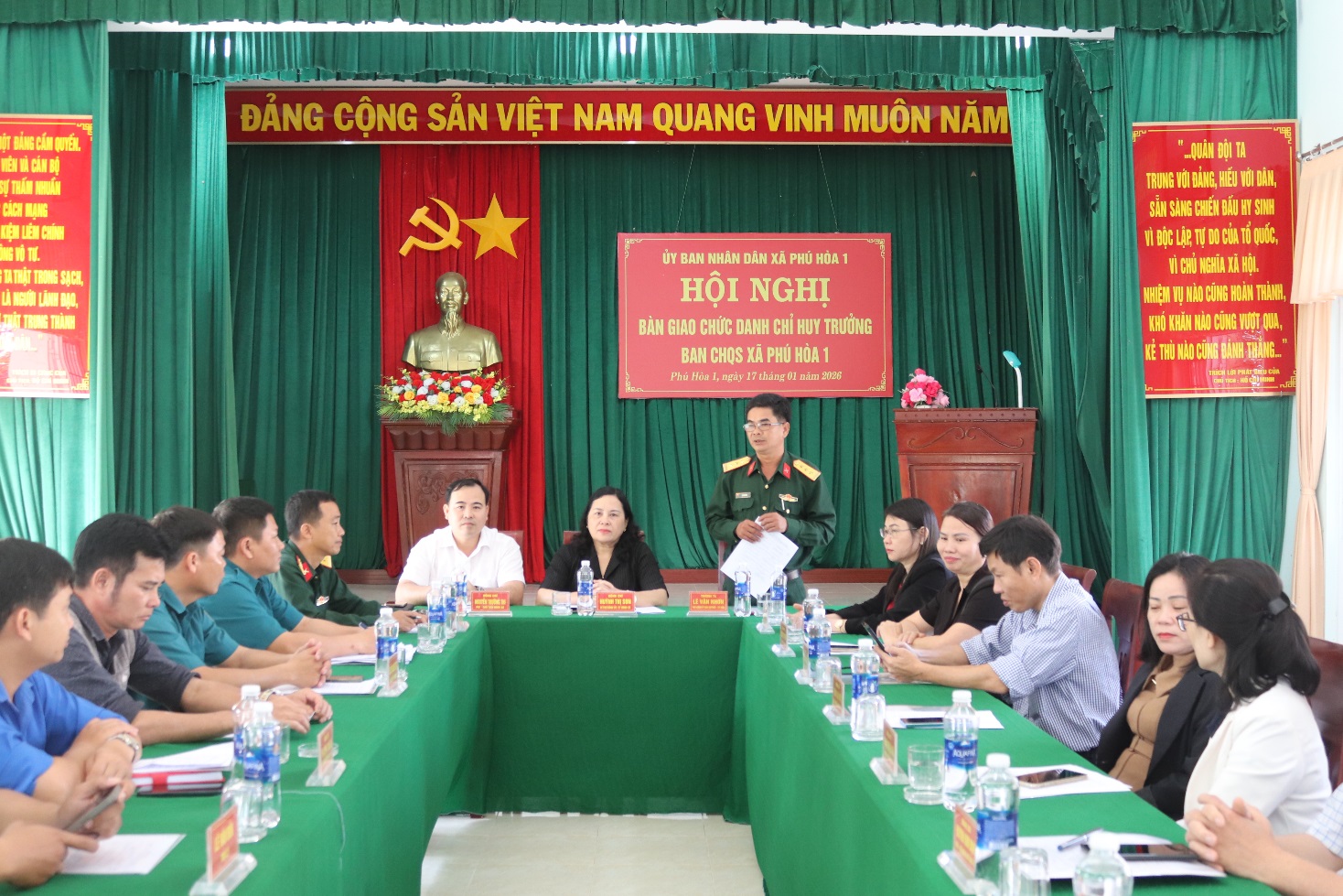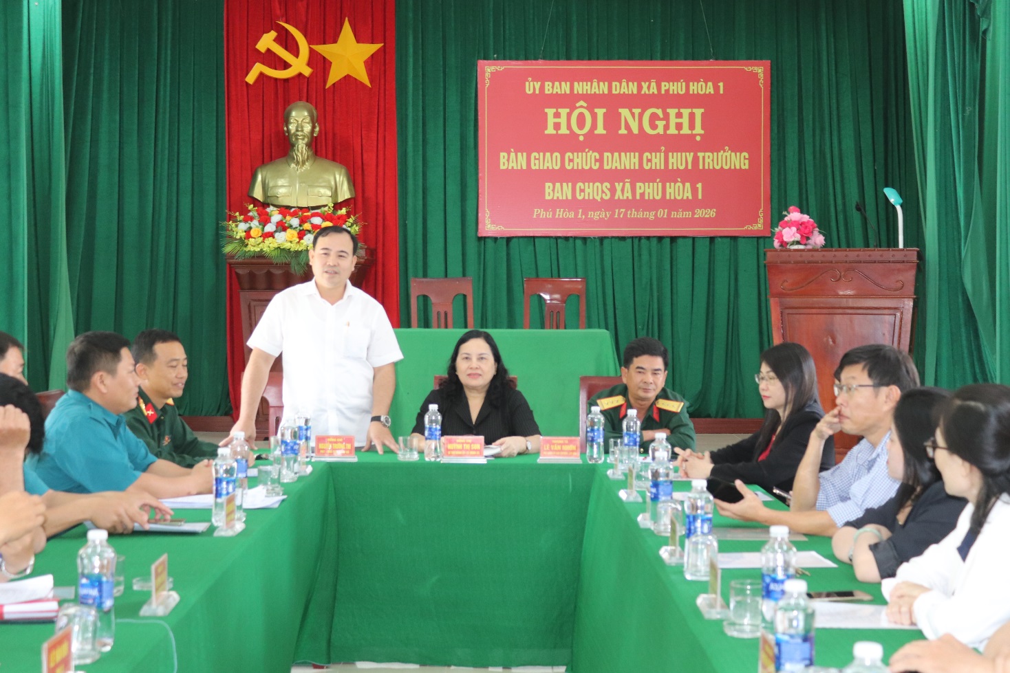 Sáng 17/01, tại trụ sở Ban CHQS xã, UBND xã Phú Hòa 1 tổ chức hội nghị bàn giao chức danh Chỉ huy trưởng Ban CHQS xã Phú Hòa 1.