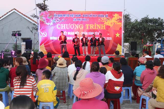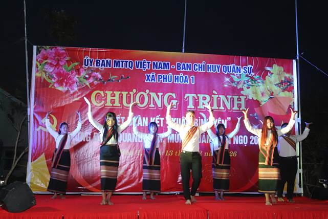 Ngày 13/2, tại nhà Rông buôn Hố Hầm, Ủy ban MTTQ Việt Nam xã Phú Hòa 1 phối hợp với Ban CHQS xã tổ chức chương trình “Tết đoàn kết - Xuân bình yên”, mừng Đảng quang vinh, mừng Xuân Bính Ngọ 2026.