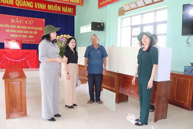 Tại các khu vực bỏ phiếu, đồng chí Huỳnh Thị Son đã trực tiếp nắm bắt tình hình triển khai các nhiệm vụ phục vụ công tác bầu cử. Nội dung kiểm tra tập trung vào việc chuẩn bị cơ sở vật chất, trang trí khánh tiết khu vực bỏ phiếu; công tác niêm yết danh sách cử tri, danh sách ứng cử viên theo đúng quy định; việc bố trí hòm phiếu chính, hòm phiếu phụ, phòng bỏ phiếu; công tác đảm bảo an ninh trật tự, vệ sinh môi trường và các điều kiện cần thiết khác để phục vụ ngày bầu cử.