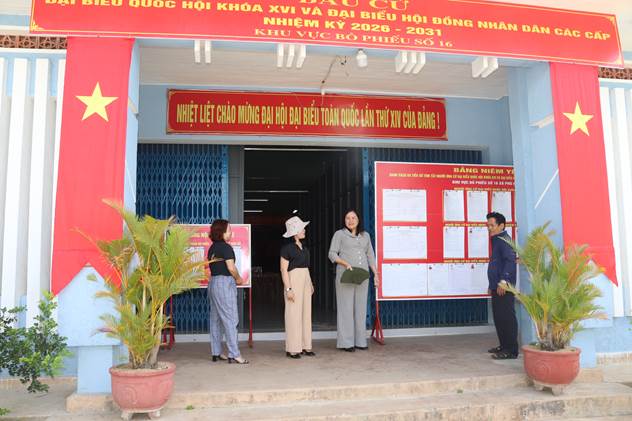 Qua kiểm tra thực tế, đồng chí Bí thư Đảng ủy, Chủ tịch HĐND xã Huỳnh Thị Son ghi nhận và đánh giá cao tinh thần chủ động, trách nhiệm của các tổ bầu cử và các thôn, buôn trong công tác chuẩn bị. Các khu vực bỏ phiếu cơ bản được bố trí khoa học, trang trọng, đảm bảo đúng hướng dẫn. Đồng chí đề nghị các tổ bầu cử tiếp tục rà soát kỹ lưỡng từng khâu, không chủ quan, lơ là; thực hiện nghiêm các quy định của pháp luật về bầu cử; chuẩn bị đầy đủ các phương án xử lý tình huống phát sinh.