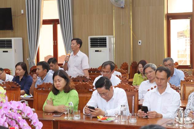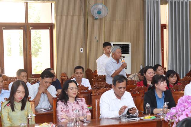 Các đồng chí Huỳnh Thị Son, Bí thư Đảng ủy, Chủ tịch HĐND xã; Trần Thị Hạnh, Phó Bí thư Thường trực Đảng ủy xã; Nguyễn Trường Thi, Phó Bí thư Đảng ủy, Chủ tịch UBND xã chủ trì buổi gặp mặt, giao ban.