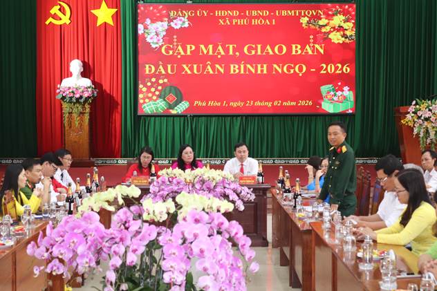 Sáng 23/2, Đảng ủy, HĐND, UBND, Ủy ban MTTQ Việt Nam xã Phú Hòa 1 tổ chức gặp mặt, giao ban đầu Xuân Bính Ngọ 2026.
