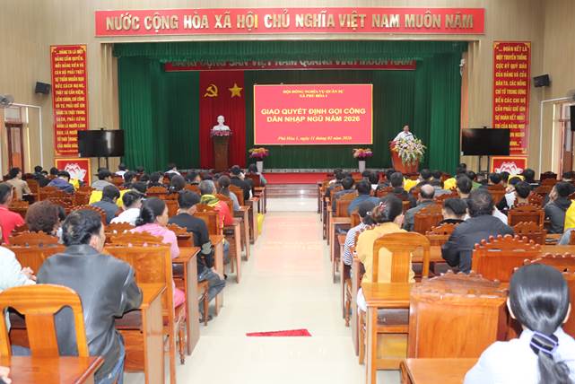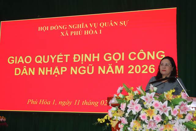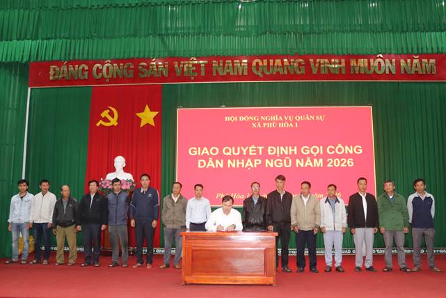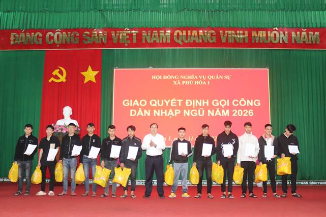 Tại hội nghị, Hội đồng Nghĩa vụ quân sự xã Phú Hòa 1 đã trao quyết định cho 103 công dân đủ điều kiện nhập ngũ và thực hiện nghĩa vụ Công an nhân dân năm 2026. Trong đó, 88 công dân tham gia nghĩa vụ quân sự và 15 công dân tham gia nghĩa vụ Công an nhân dân.