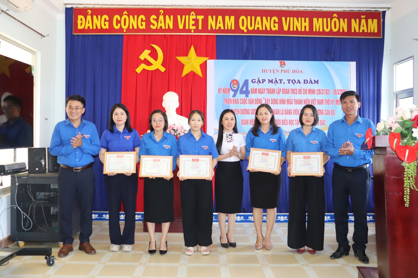 Dịp này, Huyện đoàn Phú Hòa khen thưởng 14 tập thể, cá nhân có thành tích tiêu biểu, gương cán bộ, đoàn viên, thanh niên tiêu biểu học tập và làm theo lời Bác năm 2024, gương cán bộ đoàn là đảng viên tiêu biểu năm 2024.