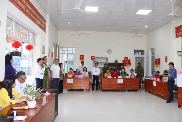 Dự buổi diễn tập có đồng chí Huỳnh Thị Son, Bí thư Đảng ủy, Chủ tịch HĐND xã, Trưởng Ban Chỉ đạo, Chủ tịch Ủy ban Bầu cử xã; Trần Thị Hạnh, Phó Bí thư Thường trực Đảng ủy xã; Nguyễn Trường Thi, Phó Bí thư Đảng ủy, Chủ tịch UBND xã; các đồng chí thành viên Ban Chỉ đạo, Ủy ban Bầu cử xã; thành viên các Ban bầu cử, Tổ bầu cử; các Tiểu ban phục vụ bầu cử và đại diện cử tri thôn Định Thọ 1.